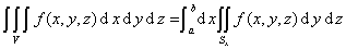 确定,其中,,,都是连续函数,且函数f(x,y,z)V上是连续的,则函数f(x,y,z)在有界区域V上的三重积分