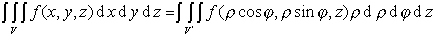式中V为直角坐标中的有界区域,V'是区域V在圆柱坐标系中的表达式.