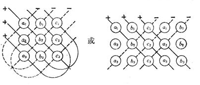 行列式的值,等于各实线上元素乘积之和减去各虚线上元素乘积之和.