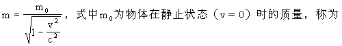 “静止质量”。根据这一关系式,质量随速度的增大而增加,但只有v接近光速c时才显著,通常v比c小得多,m和m0相差很微小,故质量可看作是一个不变的恒量。由于惯性质量同它的引力质量在数值上相等,故在物理学中,惯性质量和引力质量统称为质量。