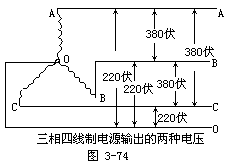 的相电压与线电压不等,因此采用三相四线制供电时,可以从三相电源获得两种电压。例如,我们所用的市电,其相电压为220伏特,线电压