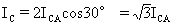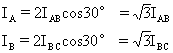 由此可见,对称负载作三角形接法时,线电流的大小等于相电流大小的