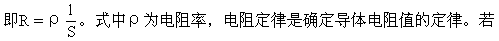 【电阻定律】对于由一定材料制成的横截面积均匀的导体,在一定的温度下,它的电阻R和导体的长度l成正比,和横截面积S成反比。