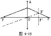 【球面镜成像】 对于凸面镜只能使特成正立、缩小的虚像。如图4-2(a)所示。由物A点出发的平行于光轴的光线,达到镜面后将反射,其反射光的延长线必交球面镜的焦点F上。而从A射向F的光线被球面反射后将平行于光轴。这两条反射线,没有实交点,只有虚交点A′,也就是说视觉认为这两条光线是从A′发出的。物体上的B点发出的沿光轴的光线,即平行于光轴,又过焦点,故B′为B点的像。在物体AB上的各点,接照前述办法作图,其各点的像点都在A′B′上,故A′B′即为AB的像。无论物AB在何处,它所发出的光射到球面镜后而反射的光,没有实交点,因此所成之像必为虚像。由图中可以看出,物体在轴的上方,所成的虚像也在轴的上方,故所成之像为正立。无论AB在什么位置,从A点出发的平行于轴的光线一定在AF方向的光线的上方。此两线的交点A′必比A点更靠近轴,所以像是缩小的。根据上述方法作图可知凹透镜成像可有三种情况:(1)物在凹镜前二倍焦距以外时,是倒立缩小的实像,见图4-2(b)。(2)物在两倍焦距以内,焦点以外时,则成倒立放大的实像,见图4-2(c)。(3)当物位于焦点以内时,则成正立的放大的虚像,见图4-2(c)。