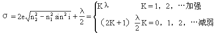 式中e为薄膜厚度,r为折射角。根据折射定律n1sini=n2sinr,因此