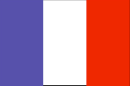 法国国旗呈长方形,长与宽之比为3:2。从左至右由蓝、白、红三个垂直长方形组成。三色旗是法国大革命的象征。其中最具代表性的是:1789年法国资产阶级革命时期,巴黎国民自卫队就以蓝、白、红三色旗为队旗。白色居中,代表国王,象征国王的神圣地位;红、蓝两色分列两边,代表巴黎市民;同时这三色又象征法国王室和巴黎资产阶级联盟。后来,三色的排列次序曾有变化,直到1812年才固定为现状,1946年法国宪法正式规定三色旗为国旗。