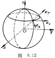 [球面坐标系的单位矢量] 对于球面坐标系(图8.12)