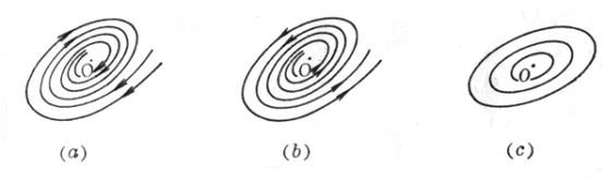 零解是稳定的.轨道形状如图13.2(a).这种类型的平衡点(0,0)称为稳定的焦点.