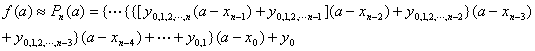 上任一点x,函数值f(x)可按下面的差商插值多项式计算: