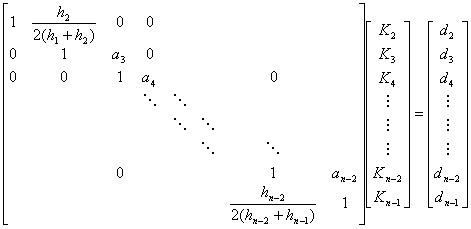 利用S(x)一阶导数的连续性及边界条件可以给出确定![]()
