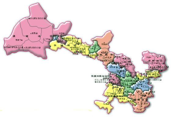 The Gansu Province area 390,000 square kilometers, the entire province governs 2 local, 10 places levels cities, 2 autonomous prefectures, 15 municipal districts, 4 county level cities, 60 counties, 7 autonomous counties,the altogether 460 towns, 1,078 townships (39 ethnic townships), 107 subdistrict offices,the provincial capital is Lanzhou.