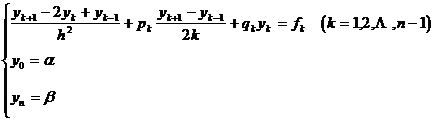 This is a special form of linear algebraic equations , in addition to the elimination method, iterative method, etc. can be used to solve, but also a simpler and more effective method - the chasing method ( see Chapter 4 , § 3).