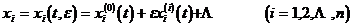 When t=t 0 , x i = x i ( ε ) = x i (0) + ε x i (1) +                       (2)