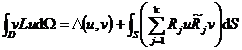 式中(u,v)是一个D上的积分,其被积函数包含u,vk阶导数;Rj是定义在边界S上的两个线性微分算子.再将(u,v)分部积分k次得