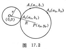 Given circle O and two points outside the circle , , find the circle P , make it pass through the points , and be tangent ( circumscribed or inscribed ) with circle O ( Fig. 17.2 ) .