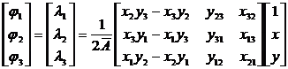 is the area coordinates , and the linear relationship between them and the rectangular coordinates is![]()