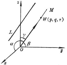 The coordinates ( p , q , r ) of any point W on the straight line OM passing through the origin and parallel to the straight line L are called the number of directions of the straight line L, and