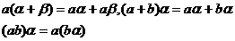 [ Linear operations ]    Let F be a field whose elements a , b , c , ... as quantities; V be a set of objects of any kind whose elements are denoted by the Greek letters α , β , γ , ... . Determine the two algorithms : Addition of elements in 1