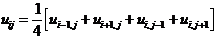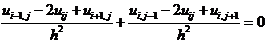 即任一节点(i,j)uij的值等于周围相邻节点上解的值的算术平均,这种形式的差分方程称为五点格式,在边界节点上取